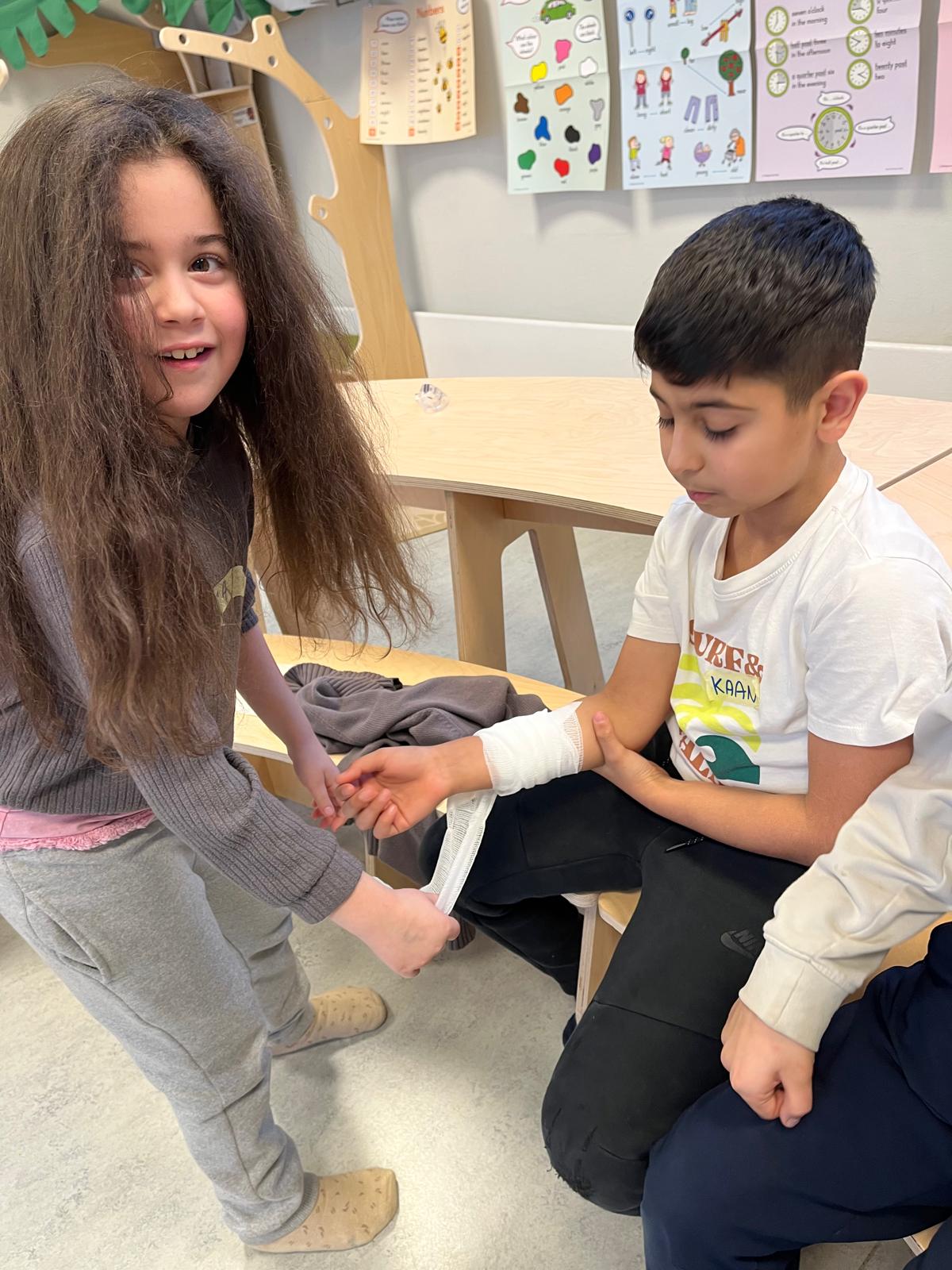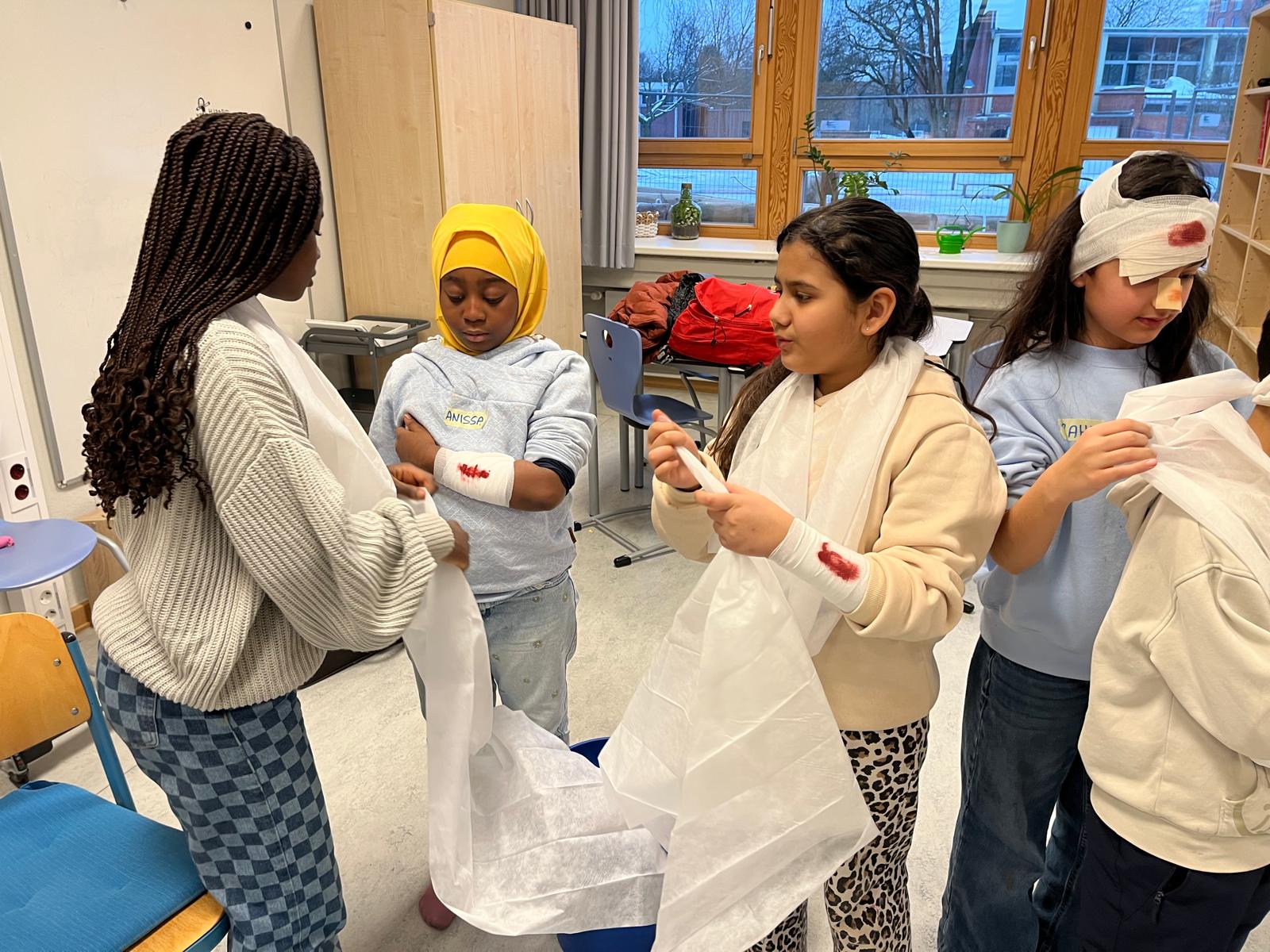 Die Kinder lernten praktische Maßnahmen wie das Anlegen von Verbänden, das Stabilisieren von Verletzungen und den richtigen Umgang mit Notfällen in Pausen oder im Klassenraum. Die Schulung kombinierte spannende Theorie mit viel Praxis, bei der jedes Kind aktiv mitmachte und eigene Erfahrungen einbrachte. Besonders beeindruckend war ihr Engagement: Sie stellten viele Fragen und berichteten stolz, das Gelernte sofort zu auszuprobieren zu wollen. Jeder Teilnehmerin erhielt eine Urkunde als Anerkennung, die ihr Selbstbewusstsein weiter fördert.