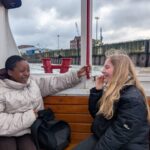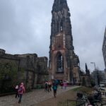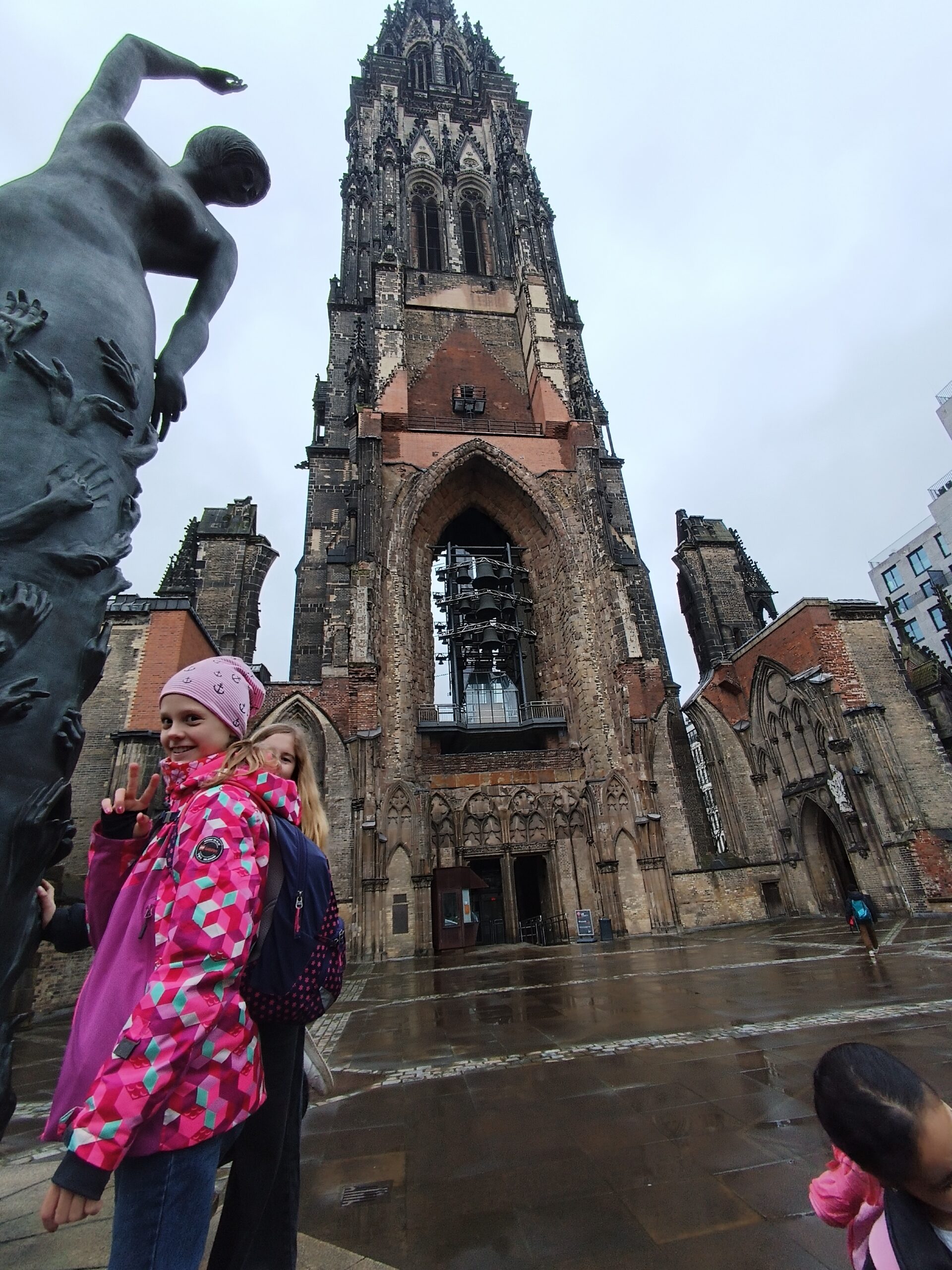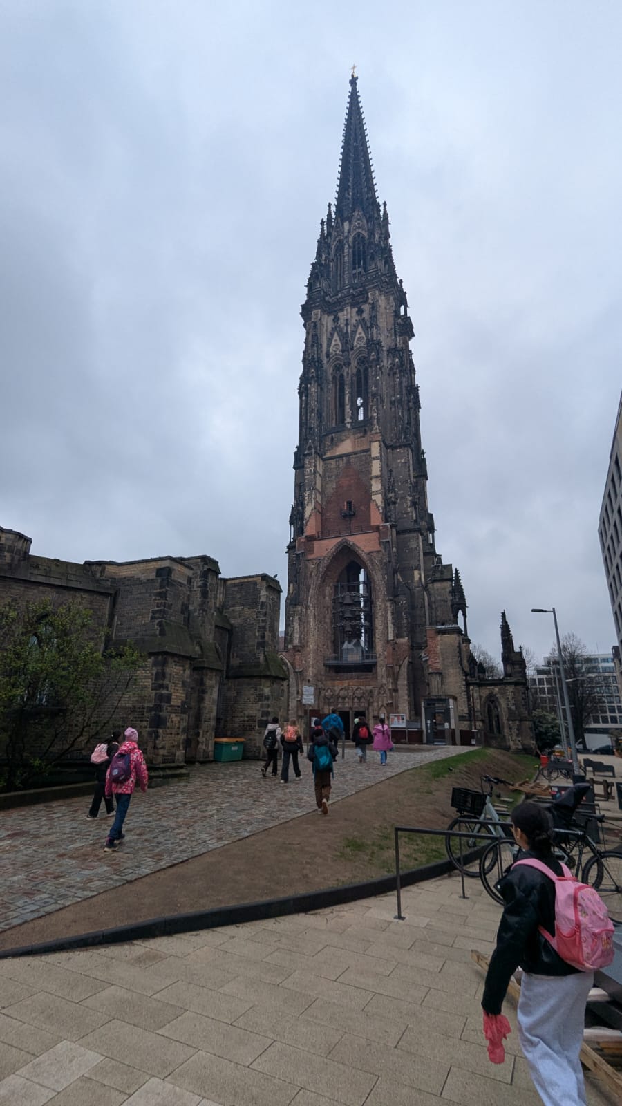 Unser erster Halt führte uns in die Deichstraße – den historischen Ort, an dem das verheerende Feuer einst ausbrach. Dort entdeckten wir, warum sich Brände früher so schnell ausbreiten konnten und wie dicht die Häuser damals gebaut waren. Anschließend gingen wir weiter zur St. Nikolai Kirche, die als Mahnmal noch heute an die Zerstörung erinnert. Gemeinsam staunten wir über die Höhe des Turms und überlegten, warum solche Bauwerke wichtige Orientierungspunkte in einer Stadt sind.