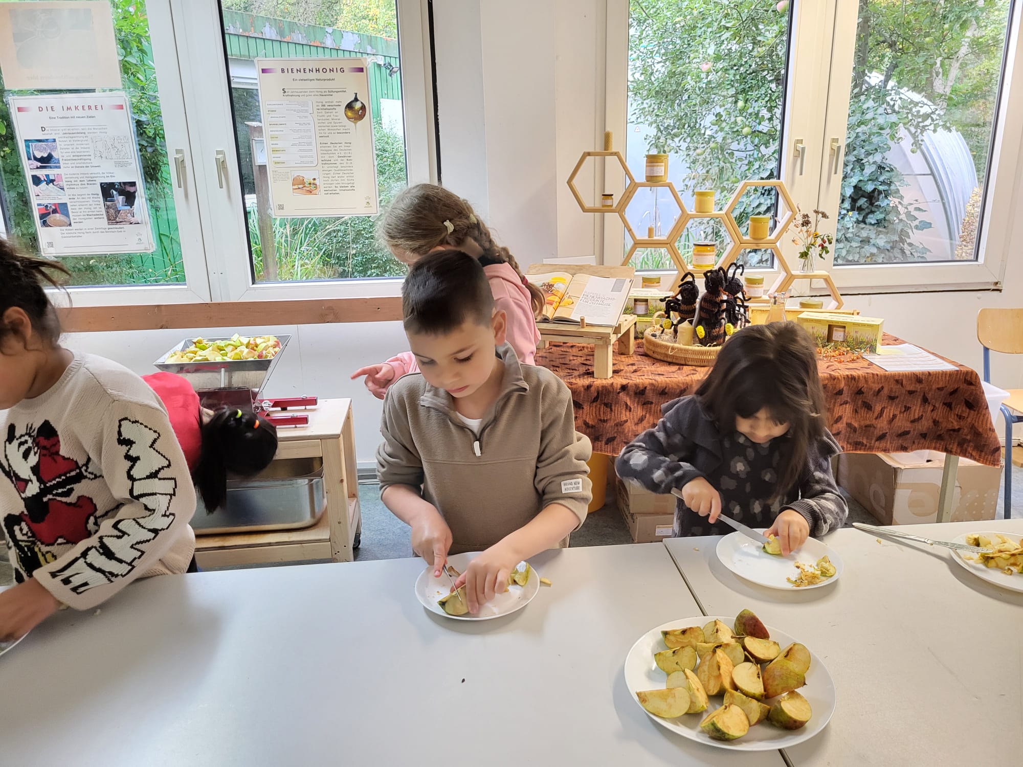 Nach ereignisreichen Stunden im Wildpark trafen sich alle auf einer der ausgewiesenen Grillflächen. In der Köhlerhütte am großen Elbblickturm wurde auf offenem Feuer gegrillt und ein gemütliches Picknick veranstaltet. Hier herrschte eine fröhliche Atmosphäre: Die Kinder genossen frisch gegrillte Würstchen, Brot und leckere Beilagen, während sich die Lehrkräfte und Begleitpersonen über das gemeinsame Erlebnis austauschten.