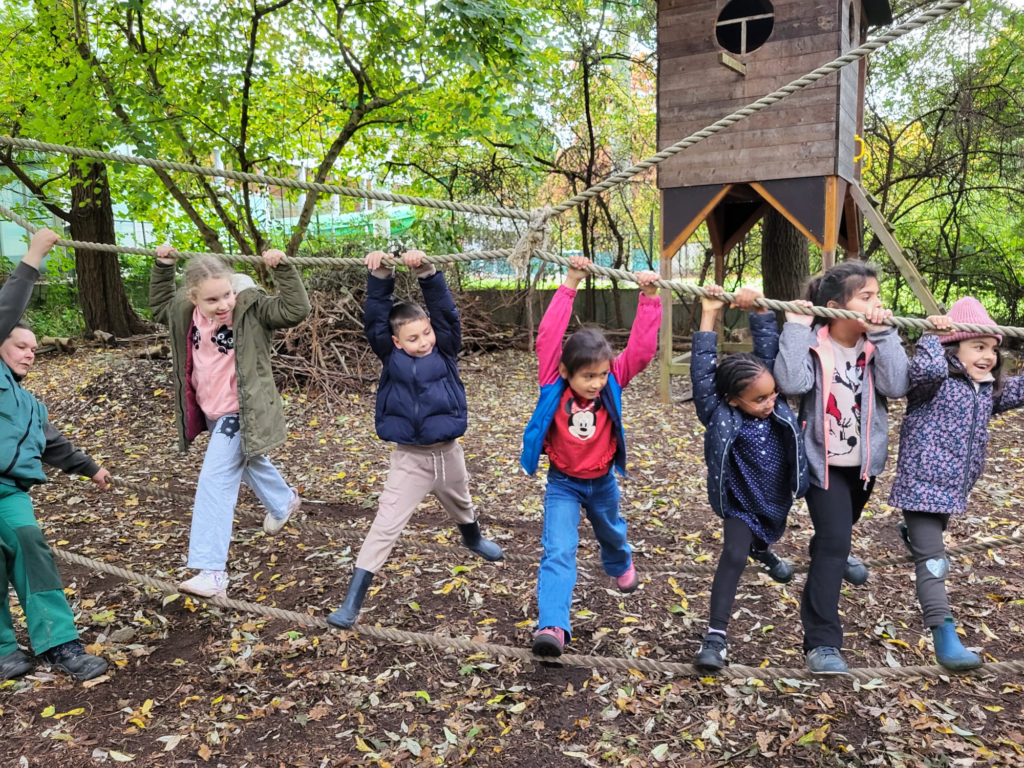Zeit für Spiel und Gemeinschaft: Im Anschluss an die Führungen und Erkundungstouren tobten sich die Kinder auf dem Abenteuerspielplatz aus