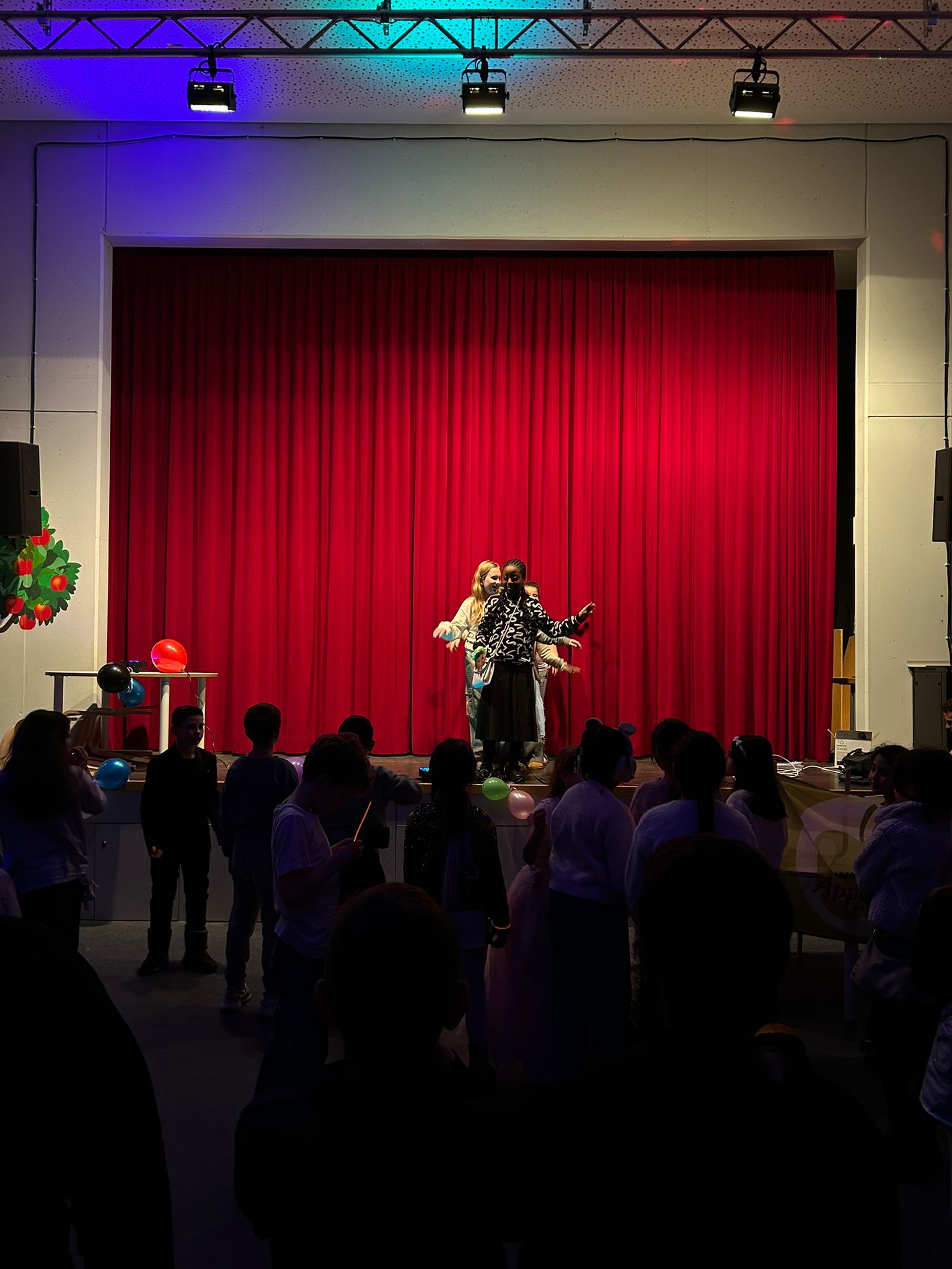 Ein großer Dank geht an unseren engagierten Elternrat, der die Schuldisco wie in den vergangenen Jahren tatkräftig unterstützt hat. Die Eltern übernahmen Einlass, Aufsicht und die Essens- und Getränkeausgabe und trugen damit dazu bei, dass sich alle Kinder sicher und wohl fühlen konnten. Ebenso bedanken wir uns herzlich bei den engagierten Kolleg*innen, die bei der Vorbereitung und Durchführung halfen, Aufsichten übernommen und die Schülerinnen im Vorfeld bei organisatorischen Fragen unterstützt haben.