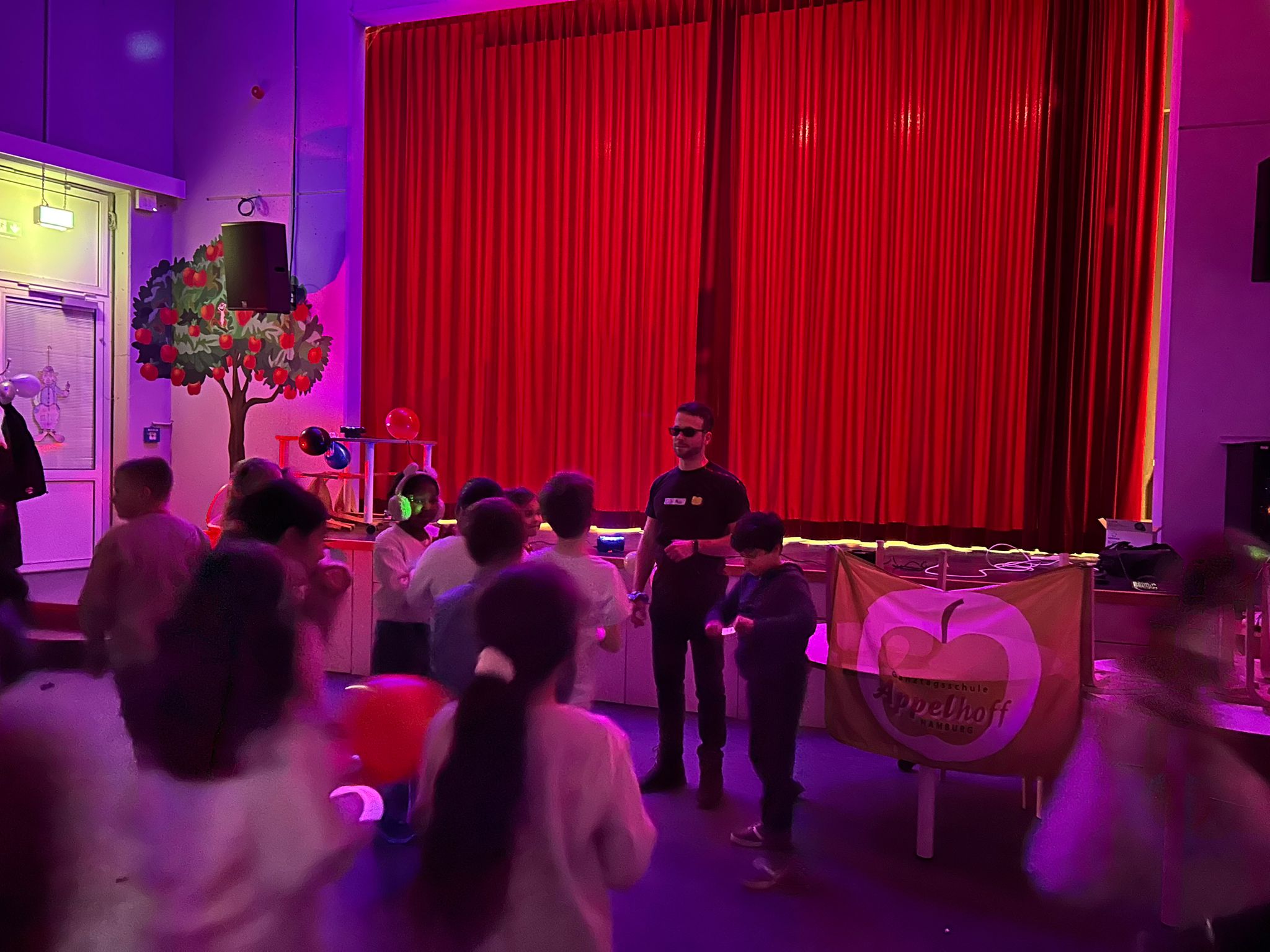 Wie jedes Jahr zum Schulhalbjahreswechsel fand auch in diesem Jahr unsere legendäre Schuldisco für die Schüler*innen der dritten und vierten Klassen an der Schule Appelhoff statt. Schon beim Einlass war die Stimmung großartig: Viele Kinder hatten sich besonders schick gemacht und freuten sich darauf, gemeinsam zu tanzen, Musik zu hören und den Abend in der Schule einmal ganz anders zu erleben. DJ Max sorgte mit einer Playlist mit Wünschen der Kinder für eine volle Tanzfläche.